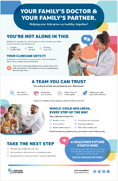 Reinforces the credibility of clinicians as partners and fellow parents making informed decisions.