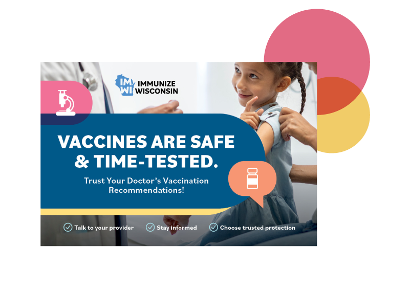 At Immunize Wisconsin, we believe that trusted voices create healthier communities. That’s why we’ve created a comprehensive suite of outreach materials including ready-to-use digital and print content designed to help providers, health systems, and immunization champions share accurate, effective vaccine information. These resources are co-brandable and easy to deploy, giving you the tools to amplify your message and build trust across the state.